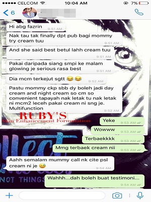 Dan ada lagi bahan-bahan semulajadi yang memberi kesan yang baik terkandung di dalam krim Ruby's ini.